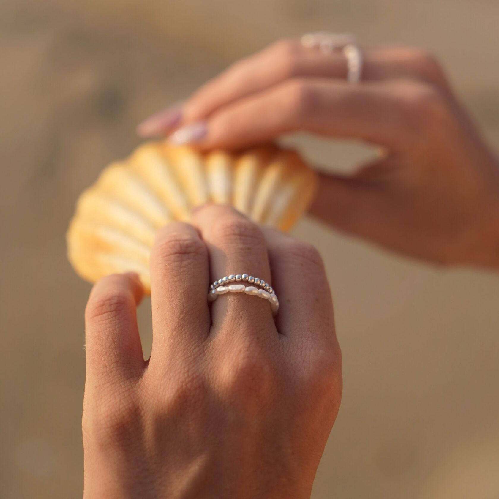 Anillo elástico con pequeñas bolas redondas de plata 925.