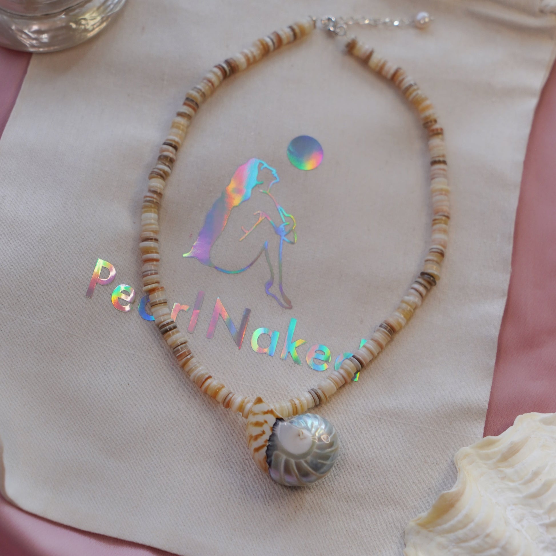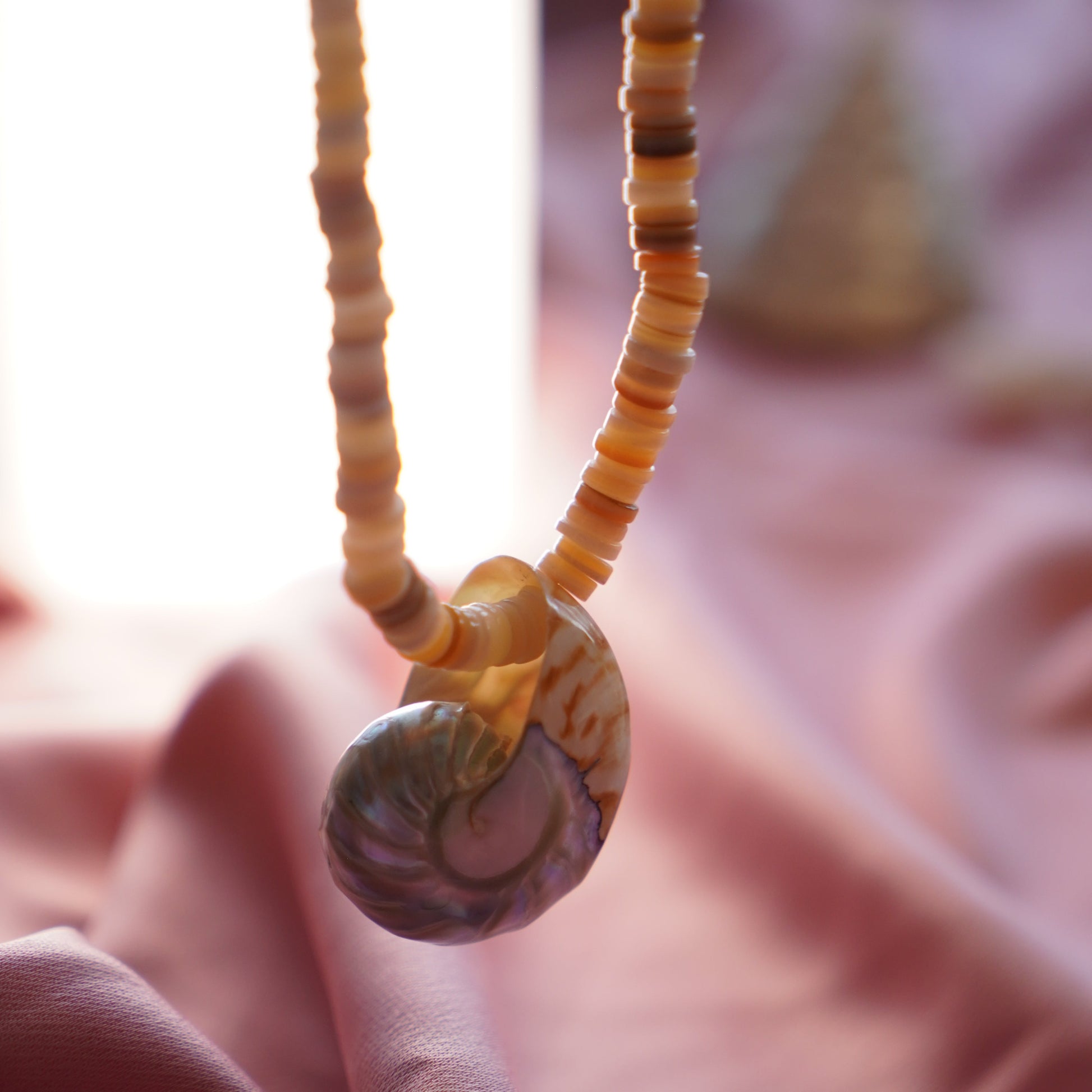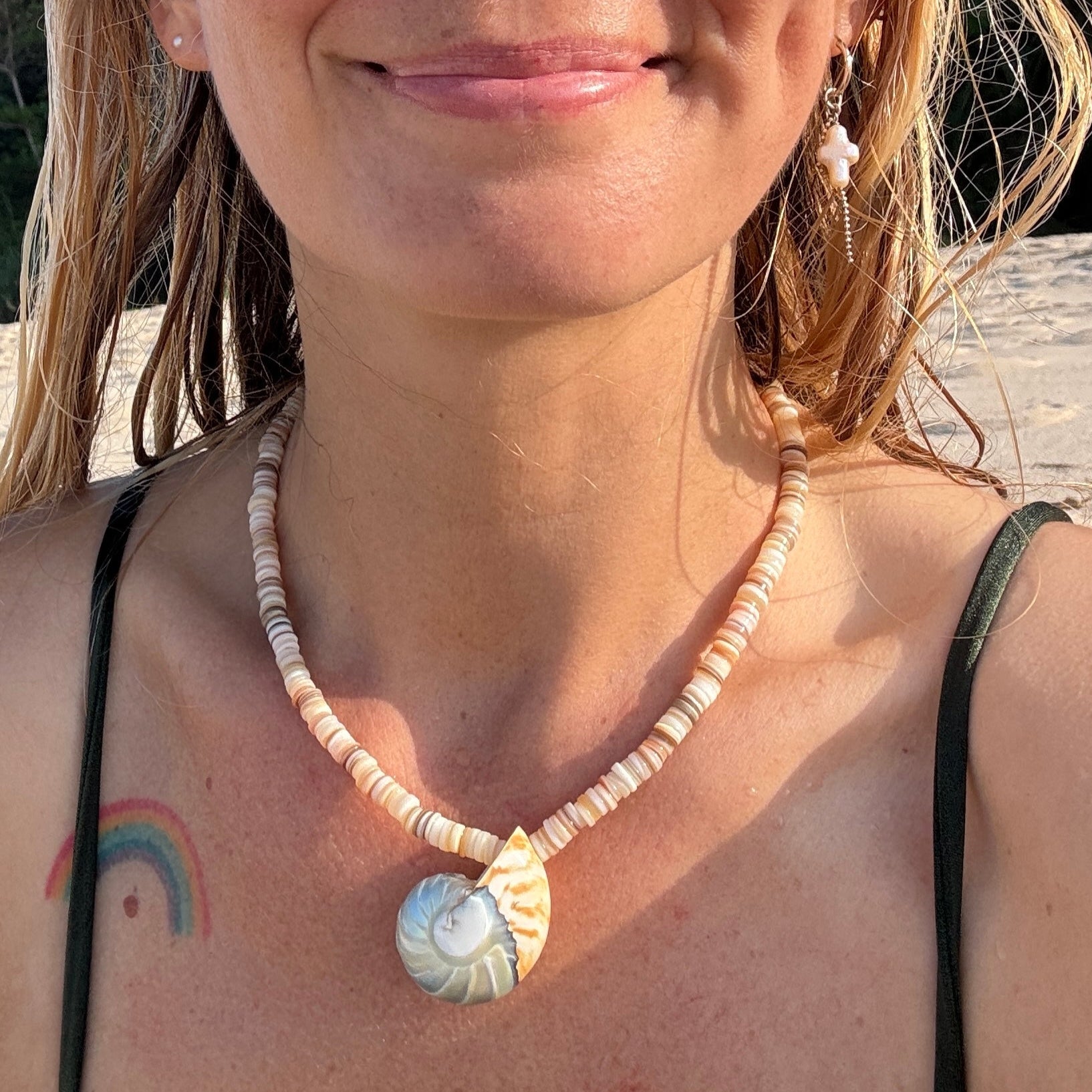 A delicate balance of textures — sea-polished shells-beads and beautiful shell from Philippines. This choker captures the effortless beauty of the ocean in every detail.