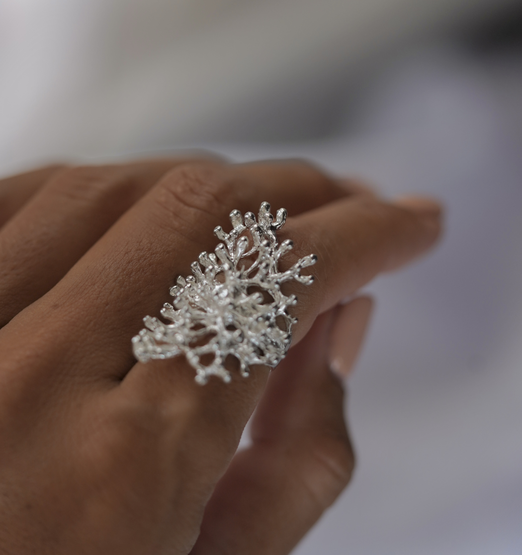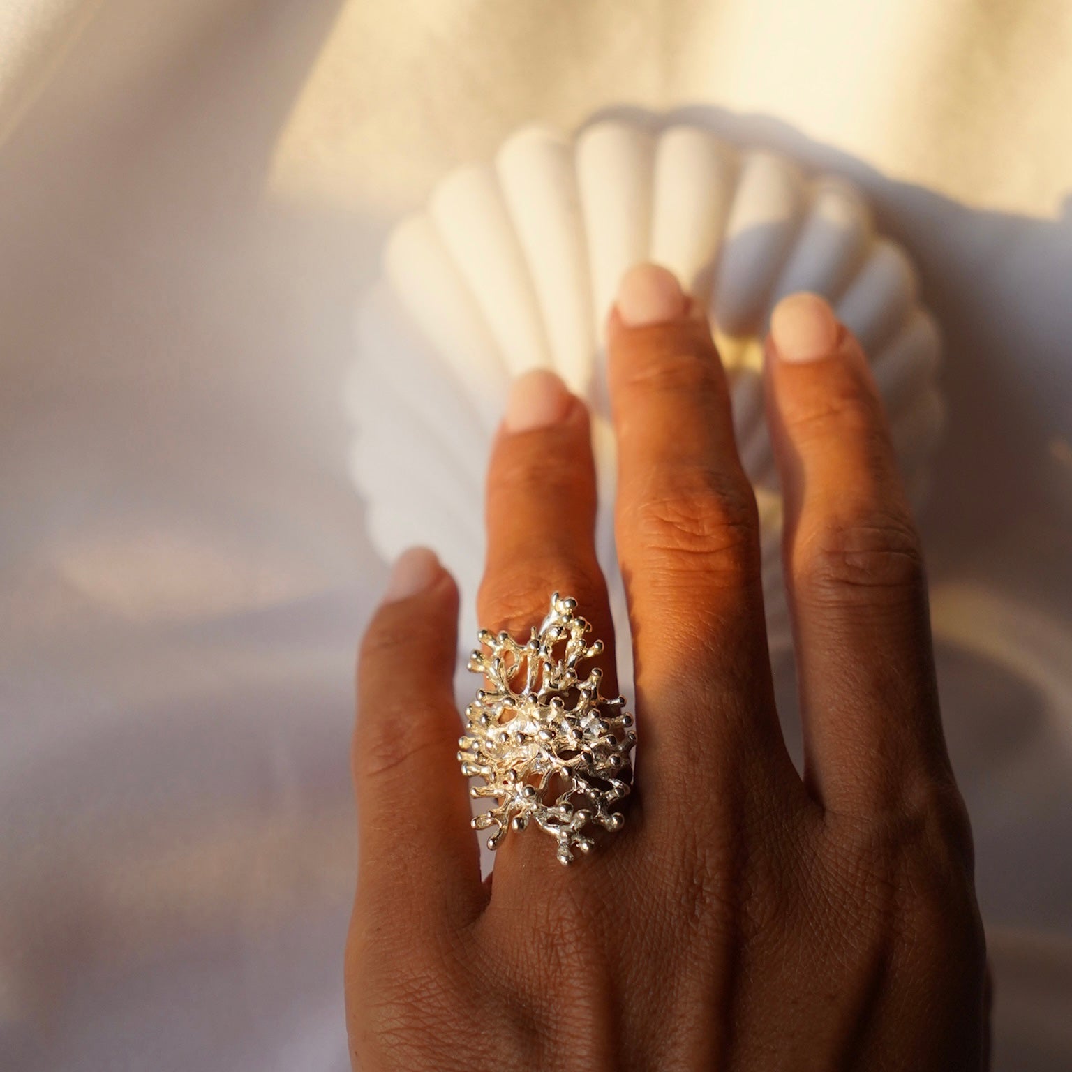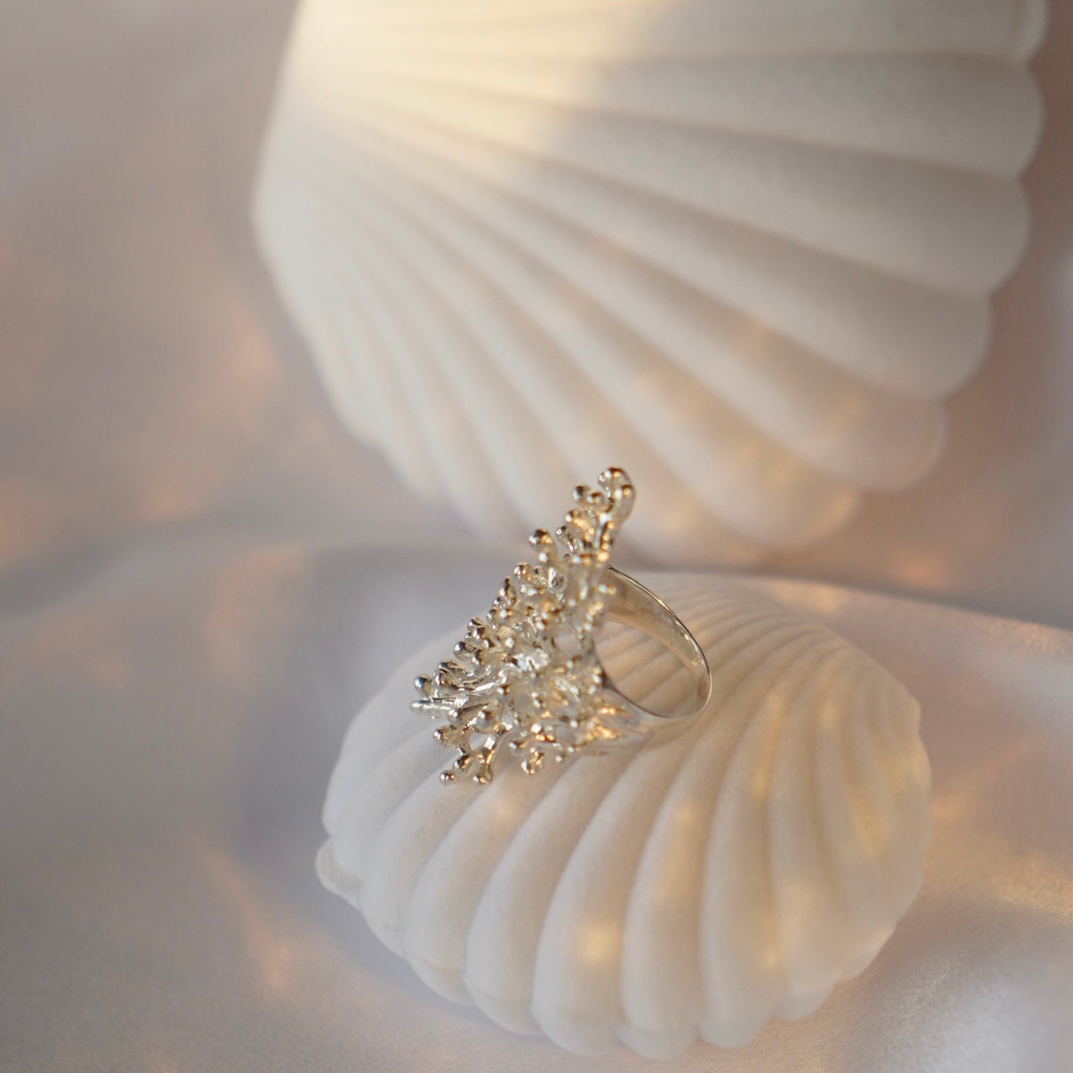 El anillo de coral es un anillo de plata 925 que para nosotros parece coral marino.