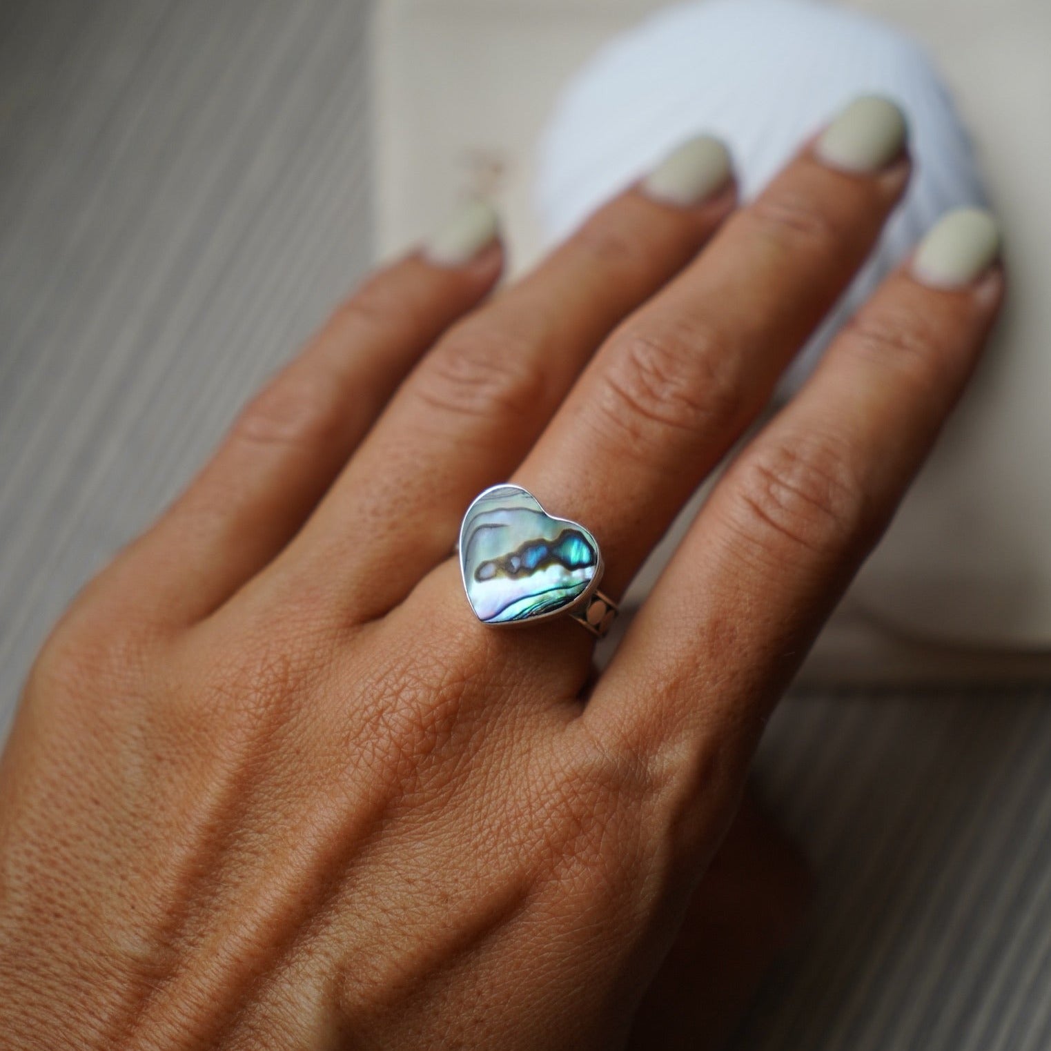 Anillo de plata con corazón de nácar oscuro combinará perfectamente contigo.