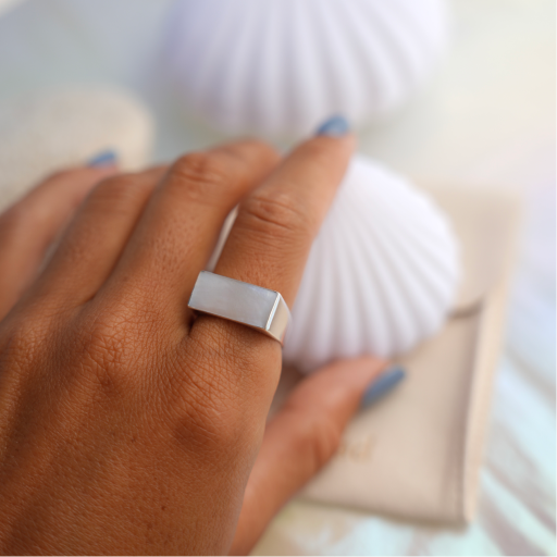 Pequeño anillo elaborado en nácar y plata que nos recordará lo claro que se puede ver bajo el agua.