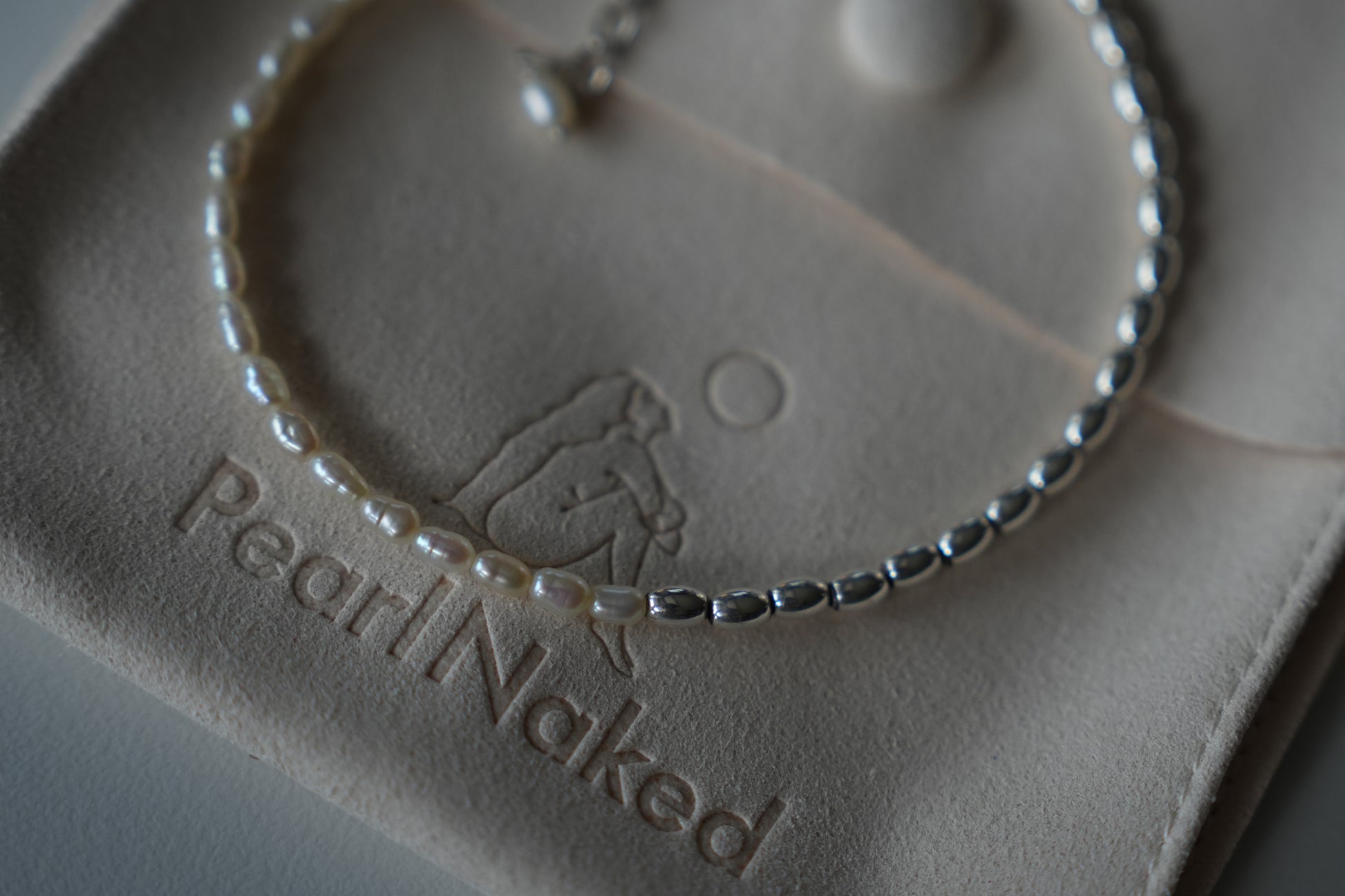 La pulsera de tobillo tiene una combinación de medias perlas diminutas de agua dulce y cuentas de arroz de plata 925, aseguradas por un broche de plata con extensión de 4 pequeños y delicadamente terminadas con una perla en el extremo.