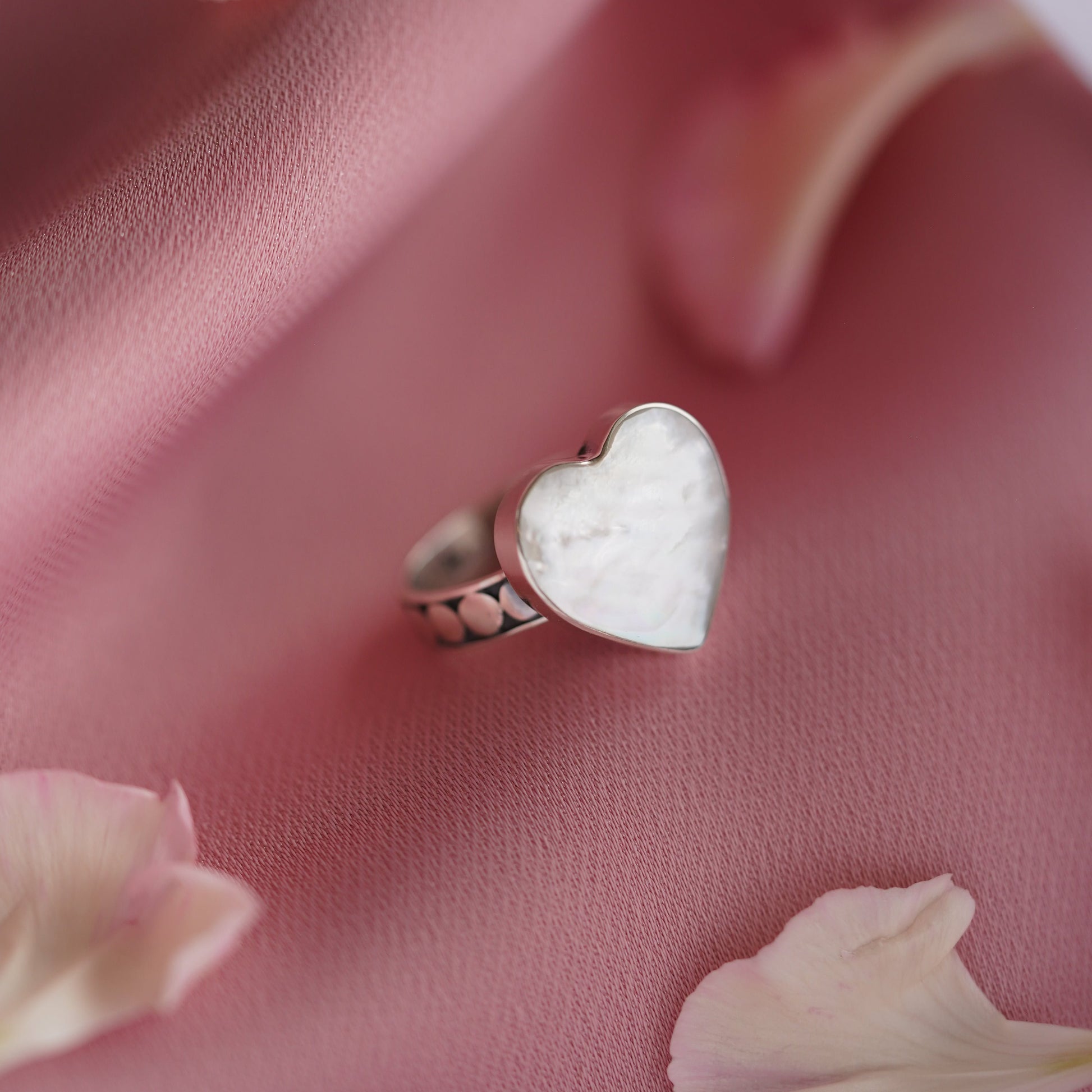 Anillo de plata con corazón de nácar oscuro combinará perfectamente contigo.