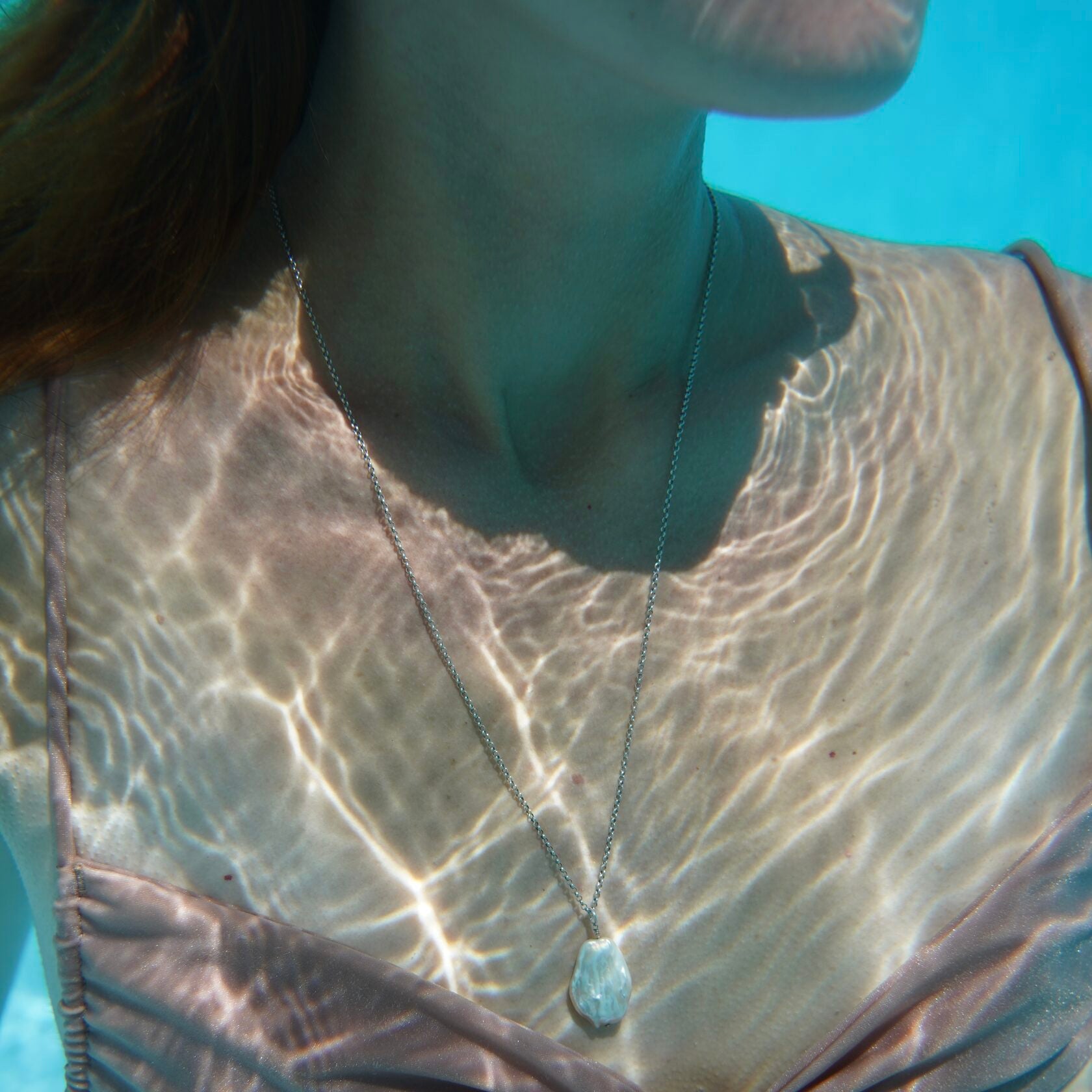 Perla mediana desigual en cadena de plata de 54 cm de largo.